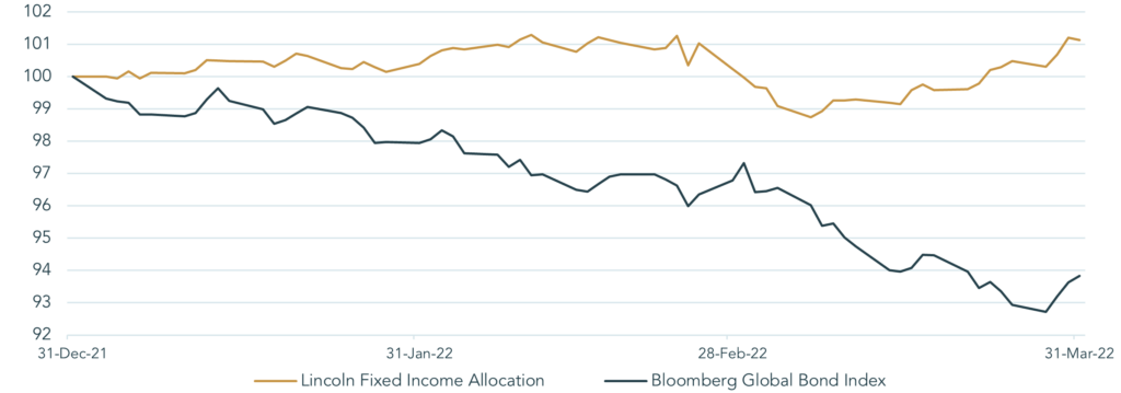 Lincoln Fixed Income Allocation versus Global Bond Index: Q1 2022